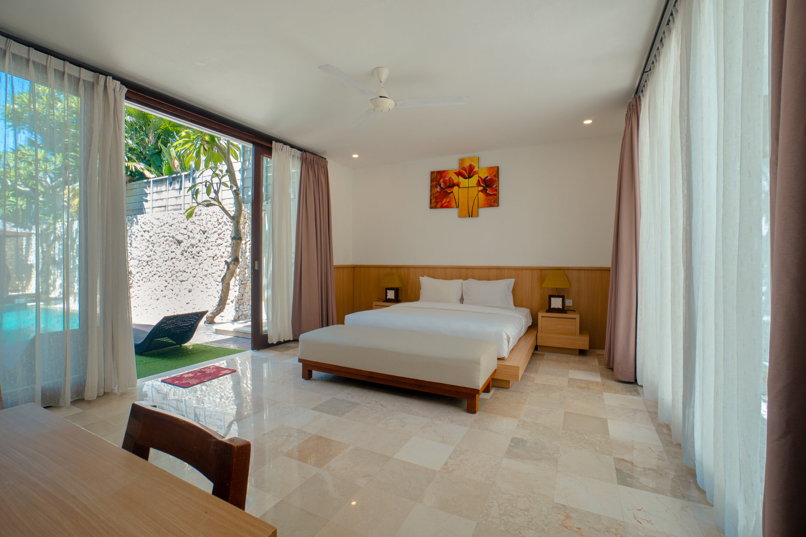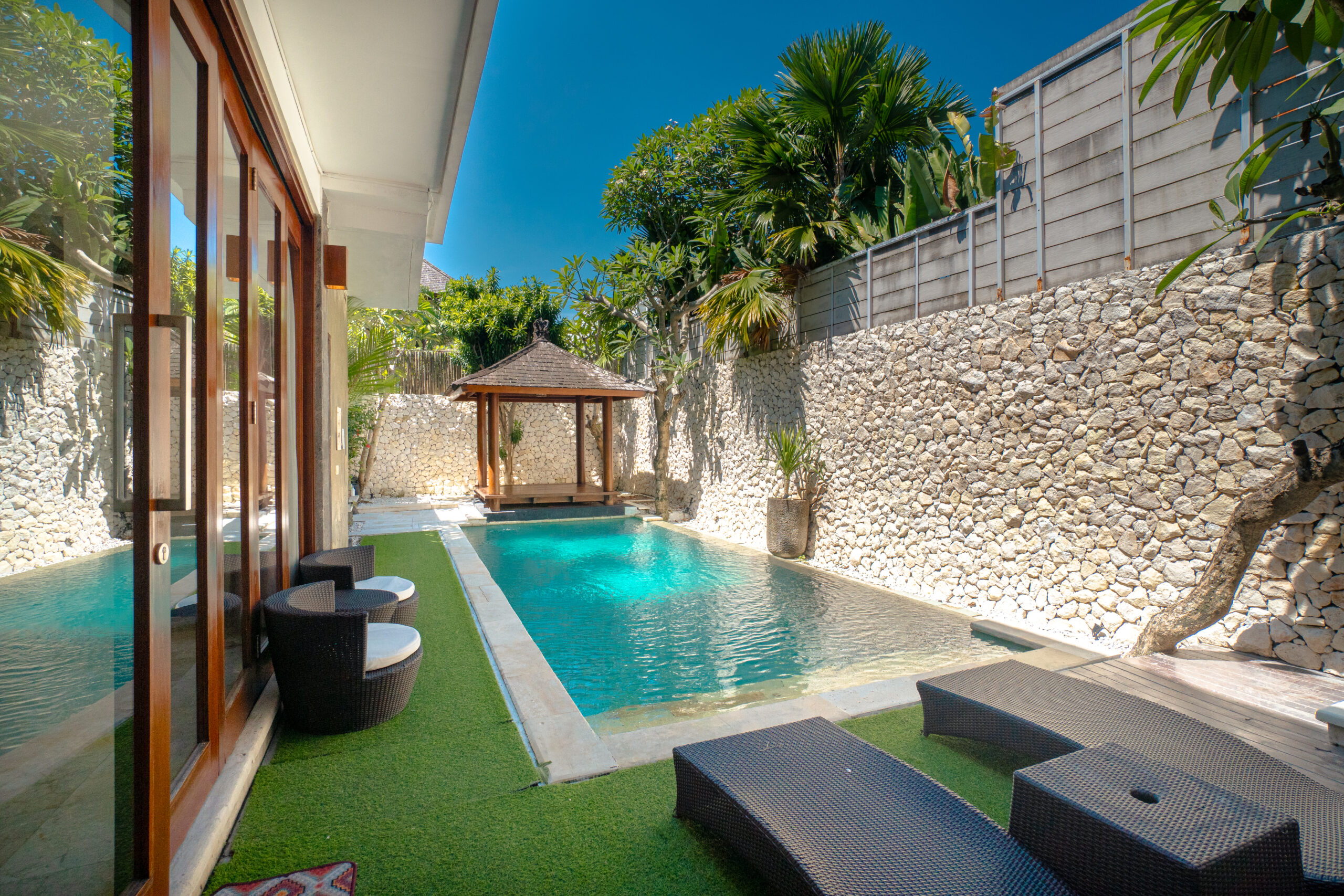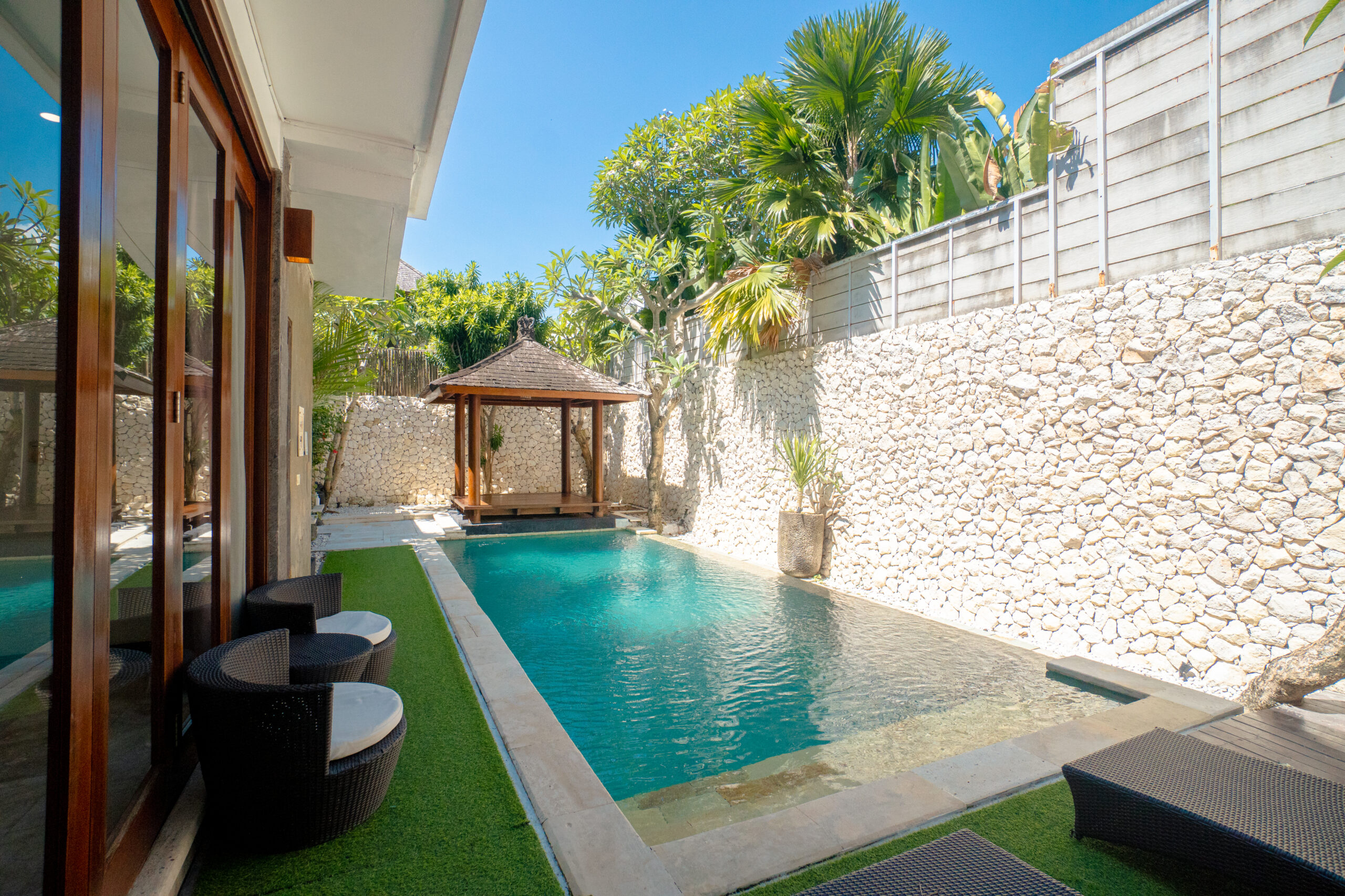Step outside to a private pool surrounded by a serene lounging area—your own quiet retreat to enjoy Bali’s warm breeze and lush tropical ambiance.